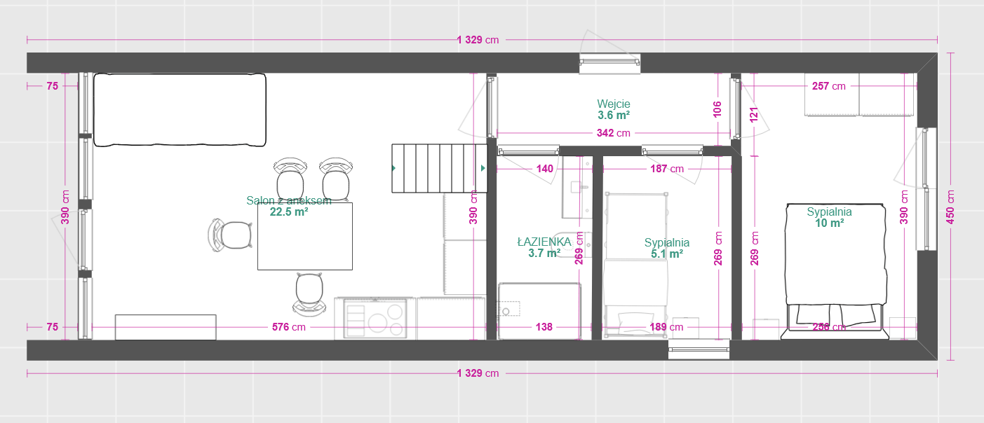 Możliwość zmiany układu ścian działowych pozwala dostosować wnętrze do własnych potrzeb – zarówno do zamieszkania, jak i pod inwestycję.