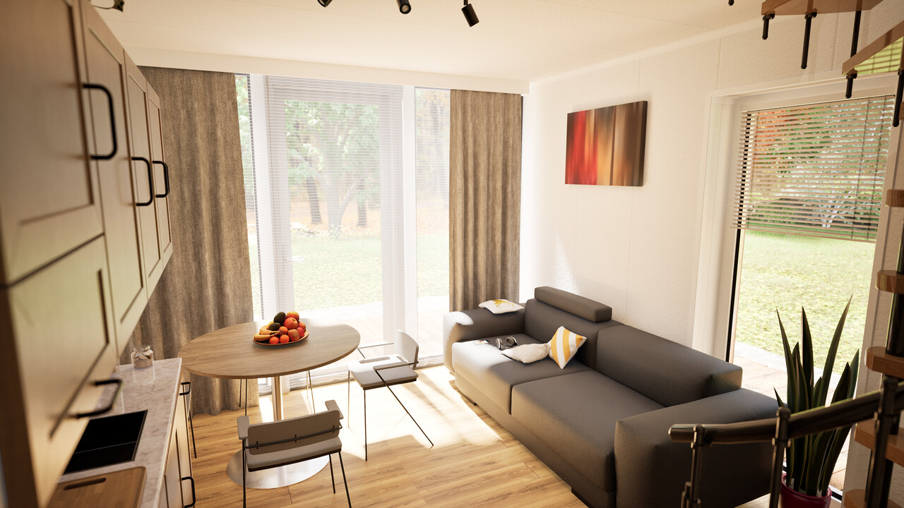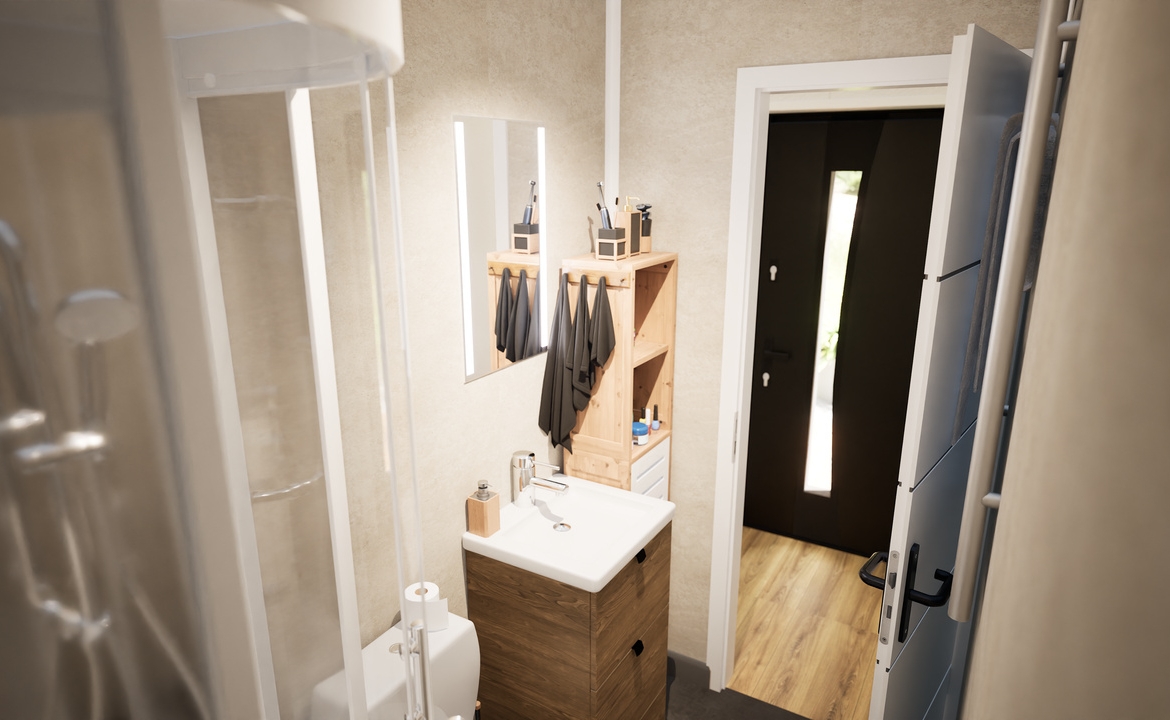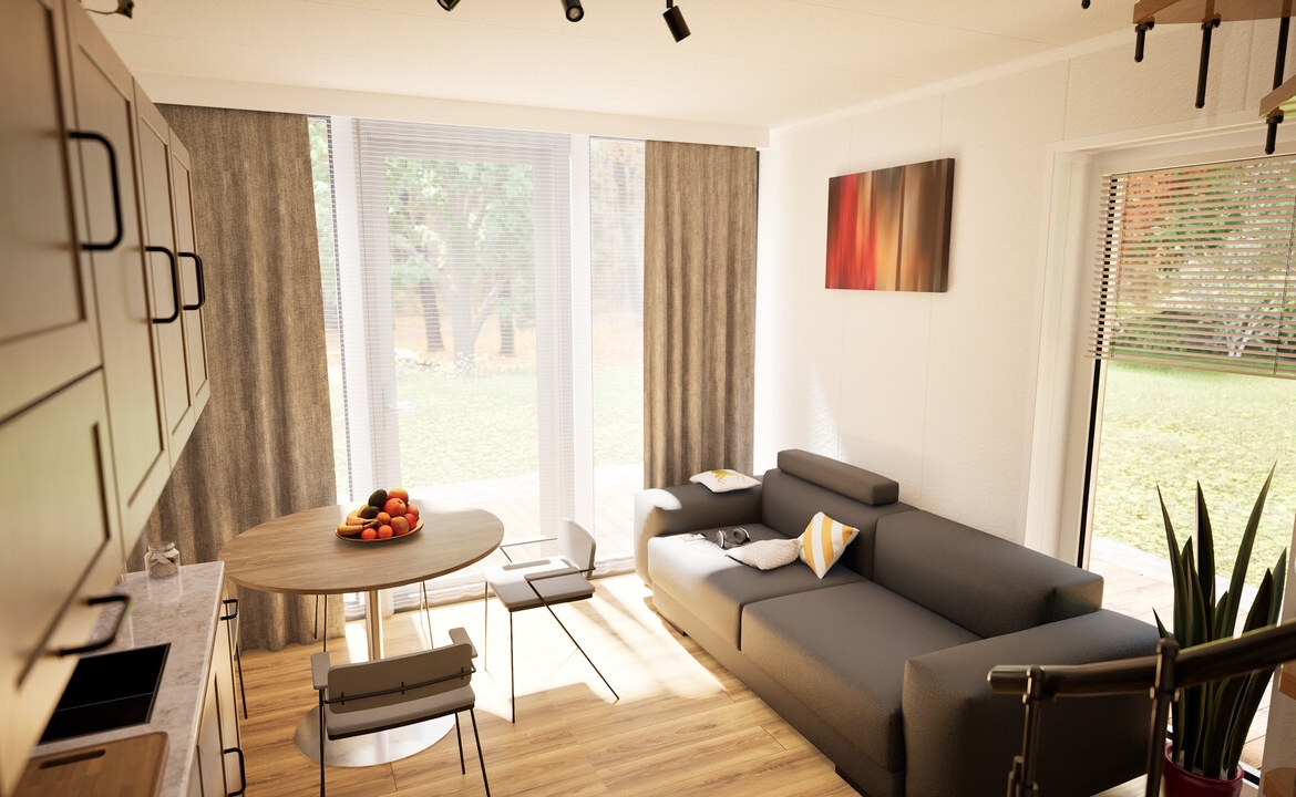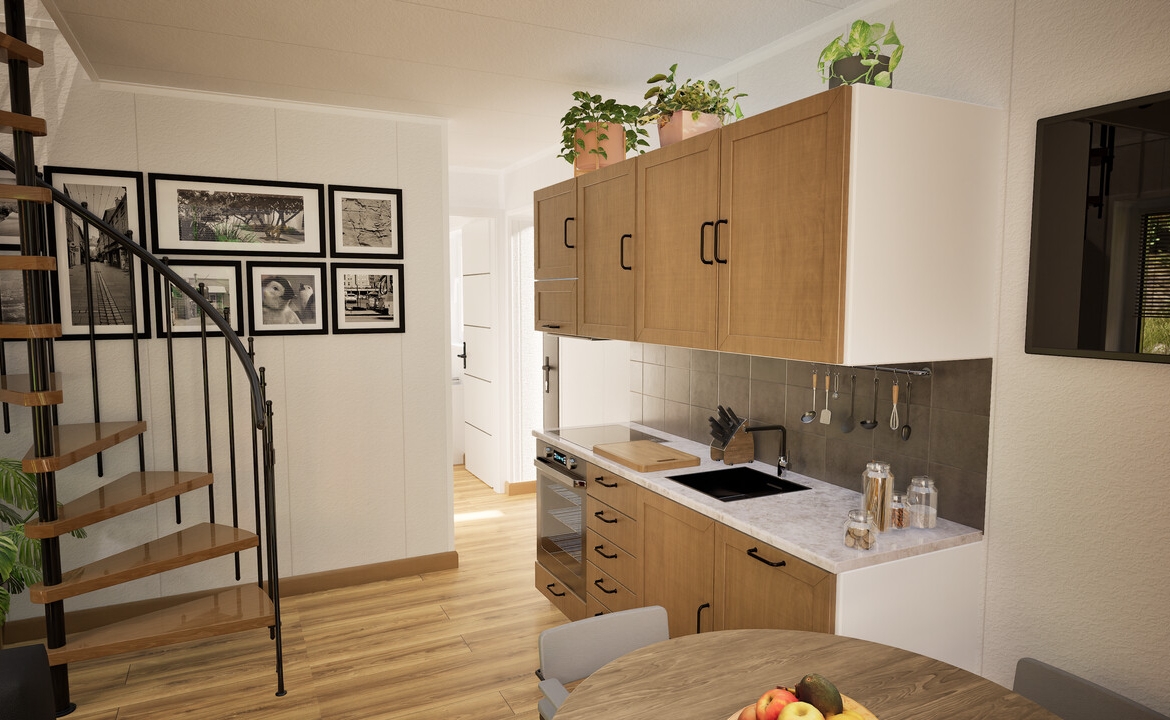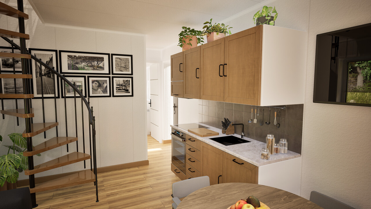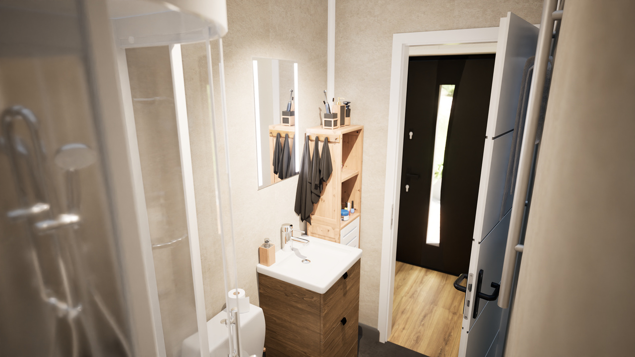 Wenus 70 to nowoczesny dom modułowy o powierzchni zabudowy 45 m² z funkcjonalnym poddaszem, na którym znajdują się dwie sypialnie i toaleta. Zaprojektowany z myślą o maksymalnym wykorzystaniu przestrzeni i komfortowym użytkowaniu przez cały rok.